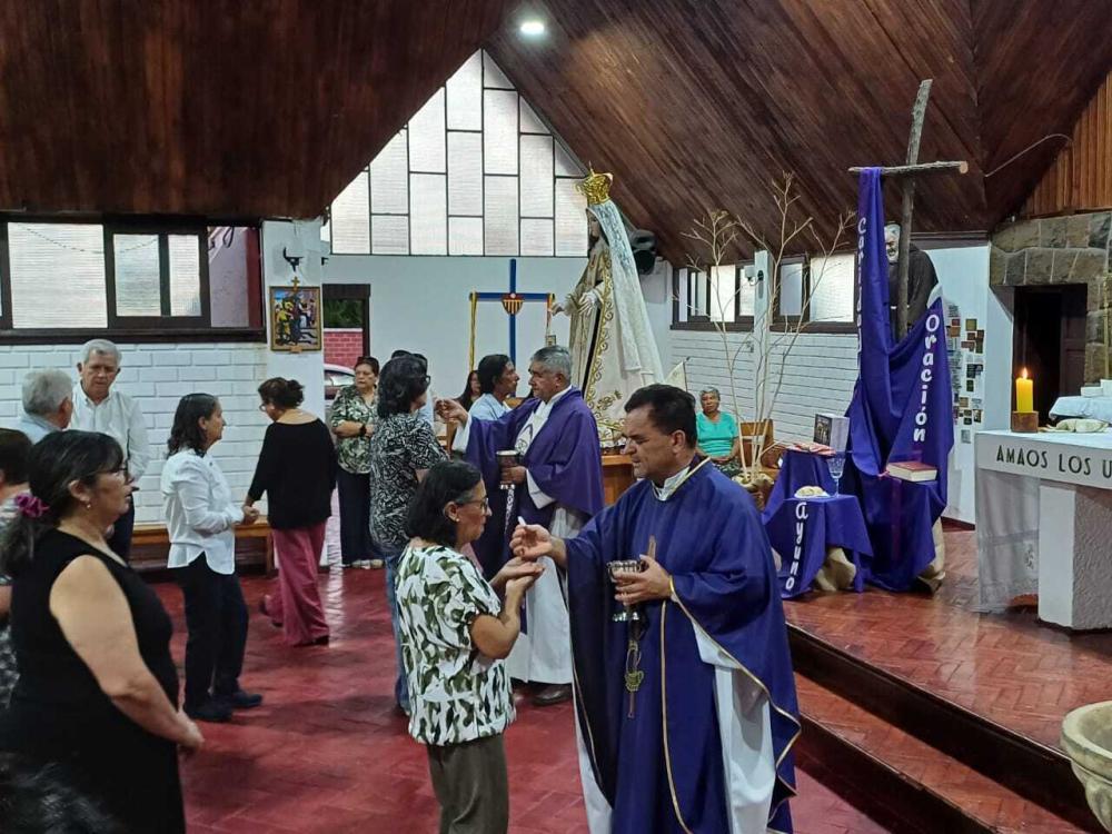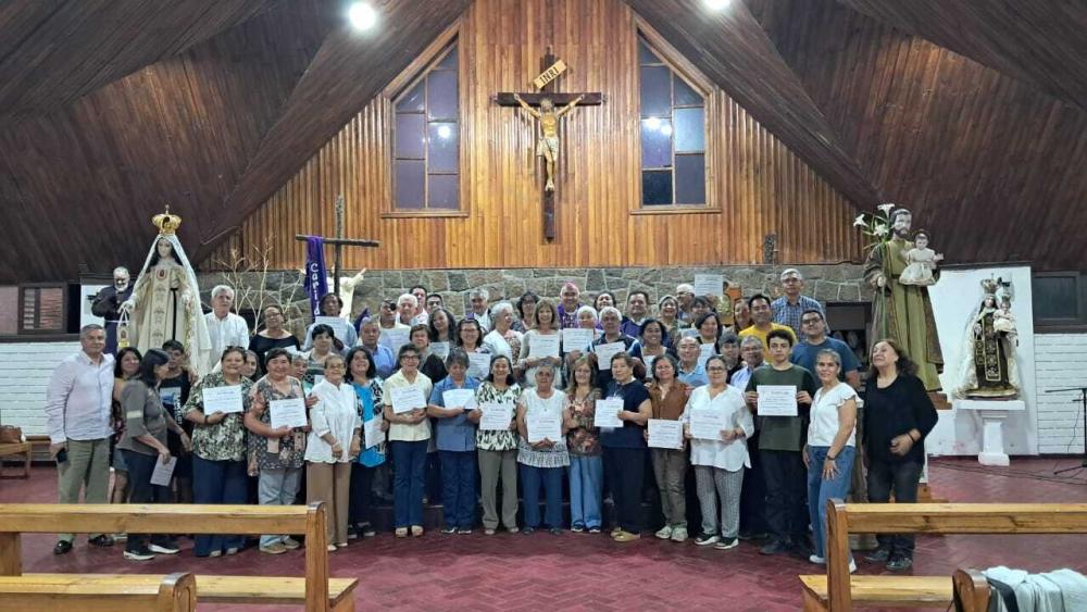 El evento culminó con una Santa Eucaristía presidida por Monseñor Guillermo Vera, Obispo de Rancagua, y concelebrada por los sacerdotes Omar Canales y Juan Carlos Urrea. Durante la celebración, los participantes recibieron con alegría sus diplomas, reconociendo su compromiso y perseverancia en la formación.