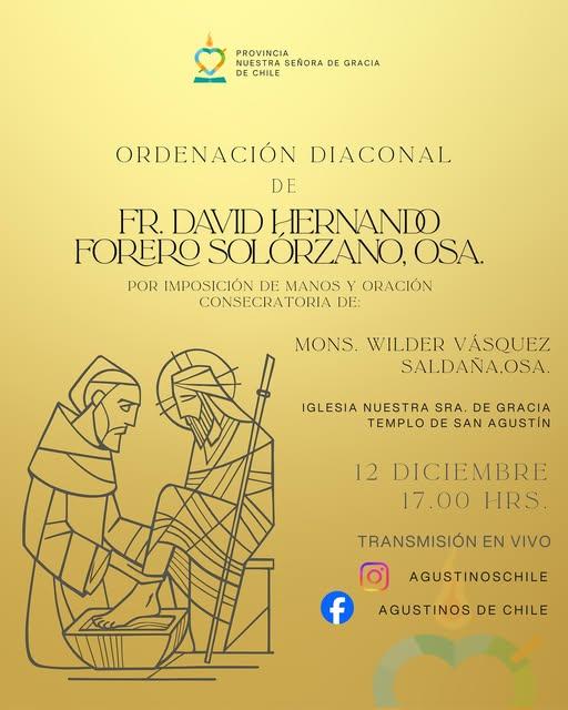 A pocos días de vivir uno de los momentos más significativos de su vida consagrada, el religioso agustino David Forero, quien sirve en la Parroquia San Agustín de San Fernando, comparte con alegría y humildad el camino que lo llevará a recibir la ordenación diaconal el próximo 12 de diciembre, a las 17:00 horas, en el Templo San Agustín de Santiago.